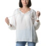 Nossa ! Blouse à Manches Raglan Longues Blanche – Impression Argenté au Block Print 100% Viscose