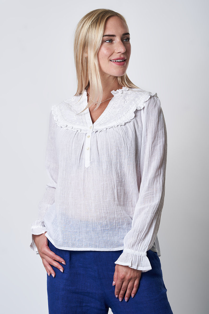 Nossa ! Blouse Blanche – Brodée ton sur ton – 100% Coton – Réf. 26107