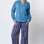 Nossa ! Blouse Bleu Canard, Manches Kimono Longues, Brodée à la Main – 100% Coton – Réf. 26302