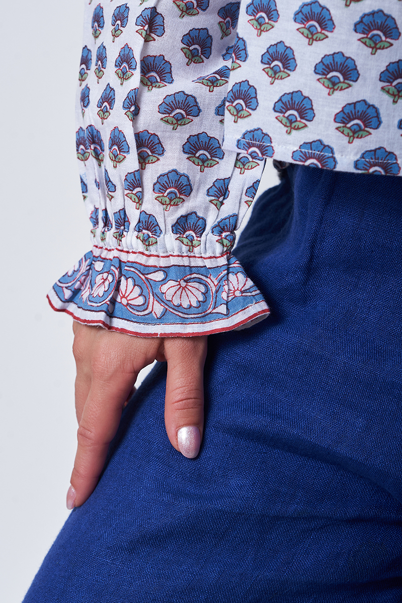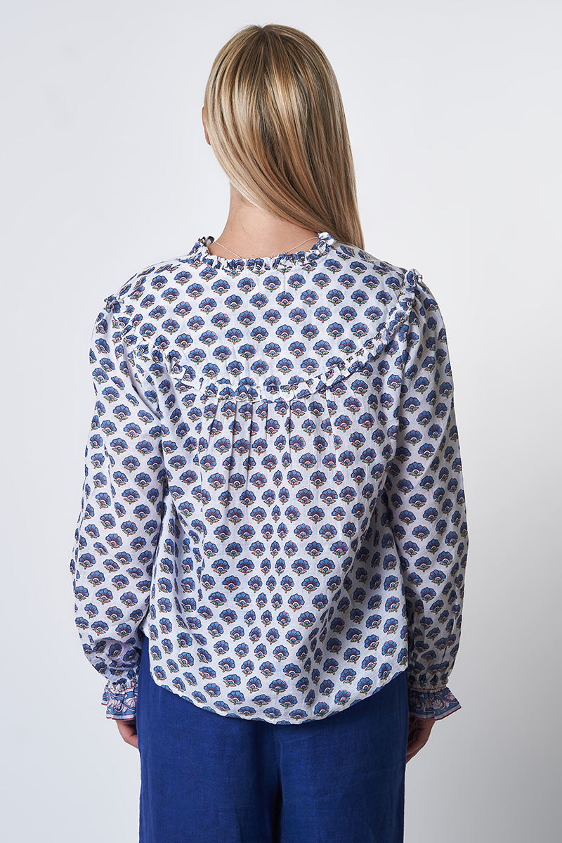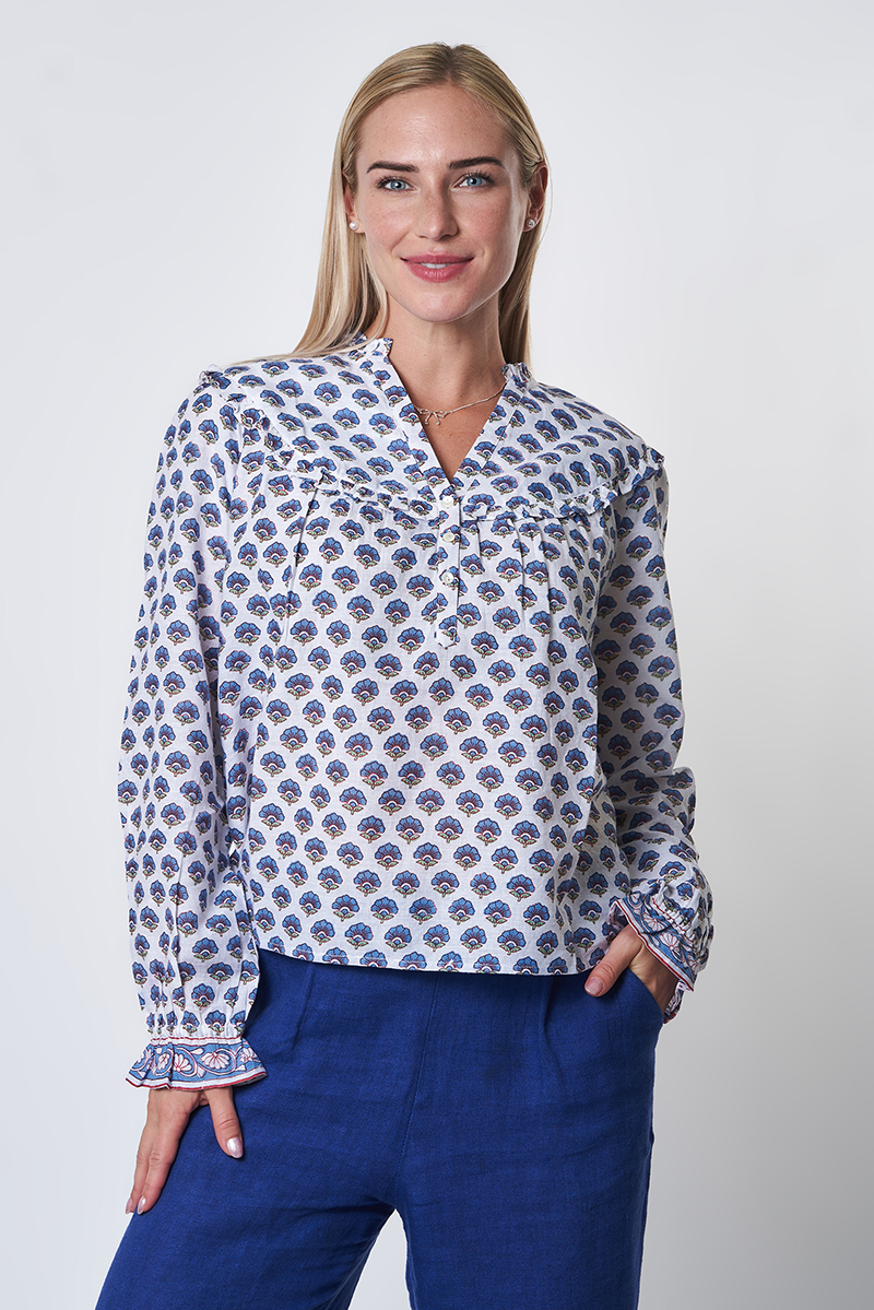 Nossa ! Blouse Imprimée Fleur Bleue – 100% Coton – Réf. 26109