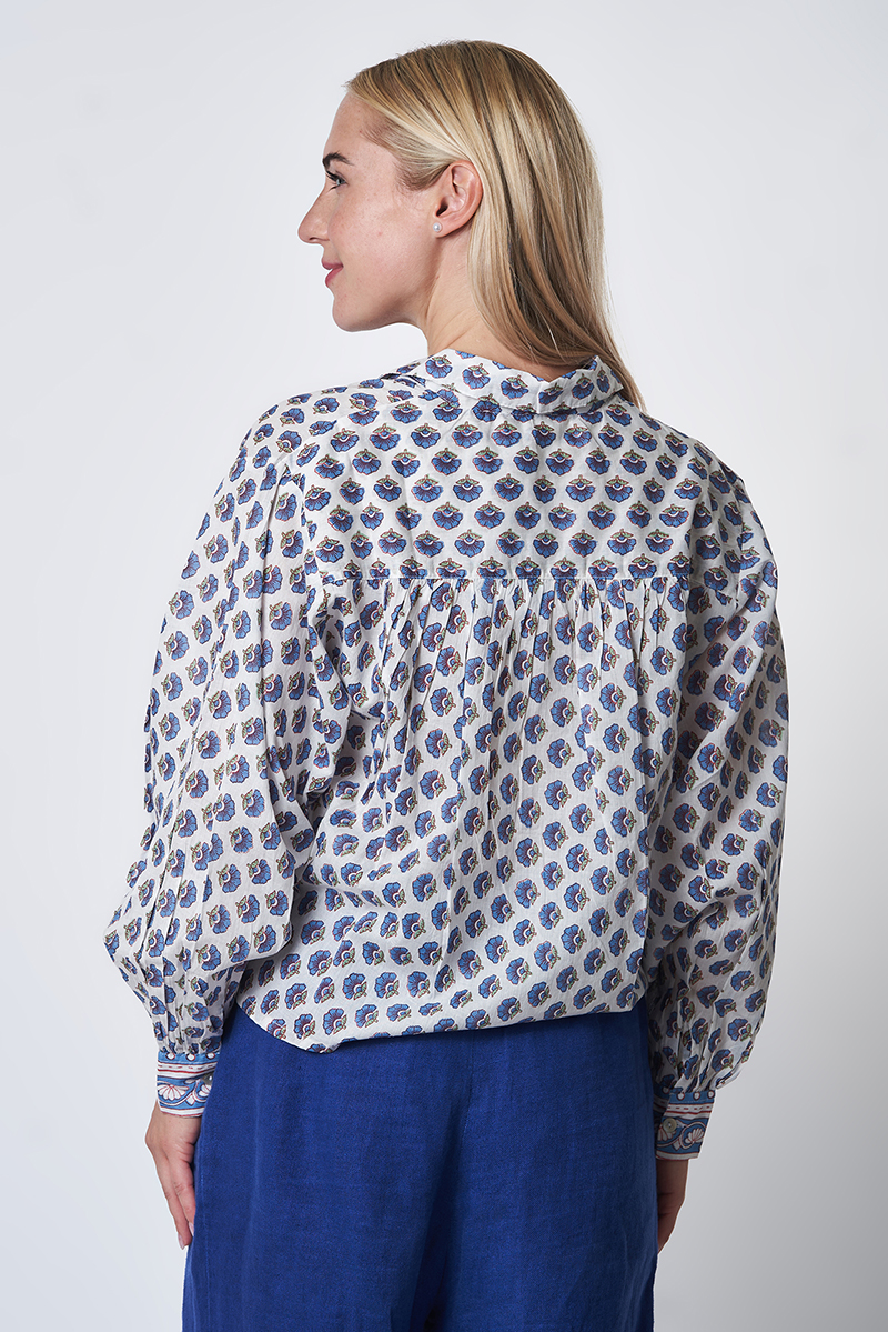 Nossa ! Chemise Courte aux Manches Amples – Imprimé Fleur Bleu – 100% Coton – Réf. 26310