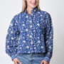 Nossa ! Chemise Courte aux Manches Amples – Imprimé Floral Bleu Indigo – 100% Coton – Réf. 26312