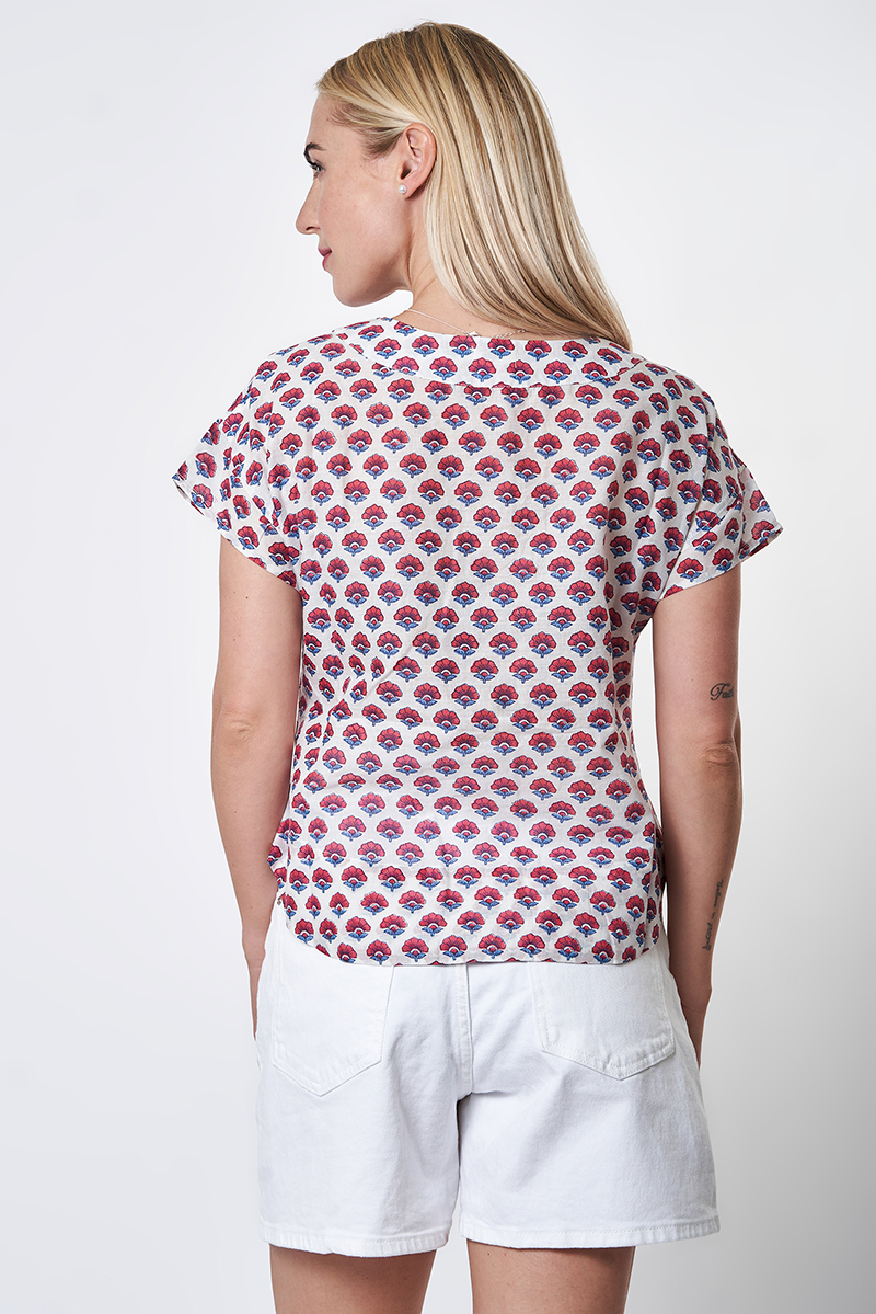 Nossa ! Chemisette Manches Kimono Courtes – Imprimée Fleur Rouge – 100% Coton – Réf. 26119