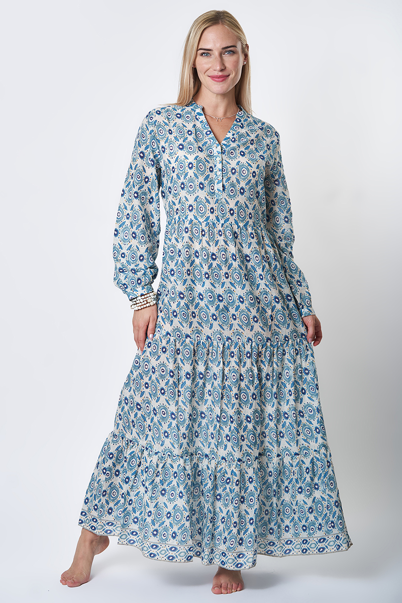 Nossa ! Robe-Chemise longue – Imprimé Ikat – 100% Coton – Réf. 26101