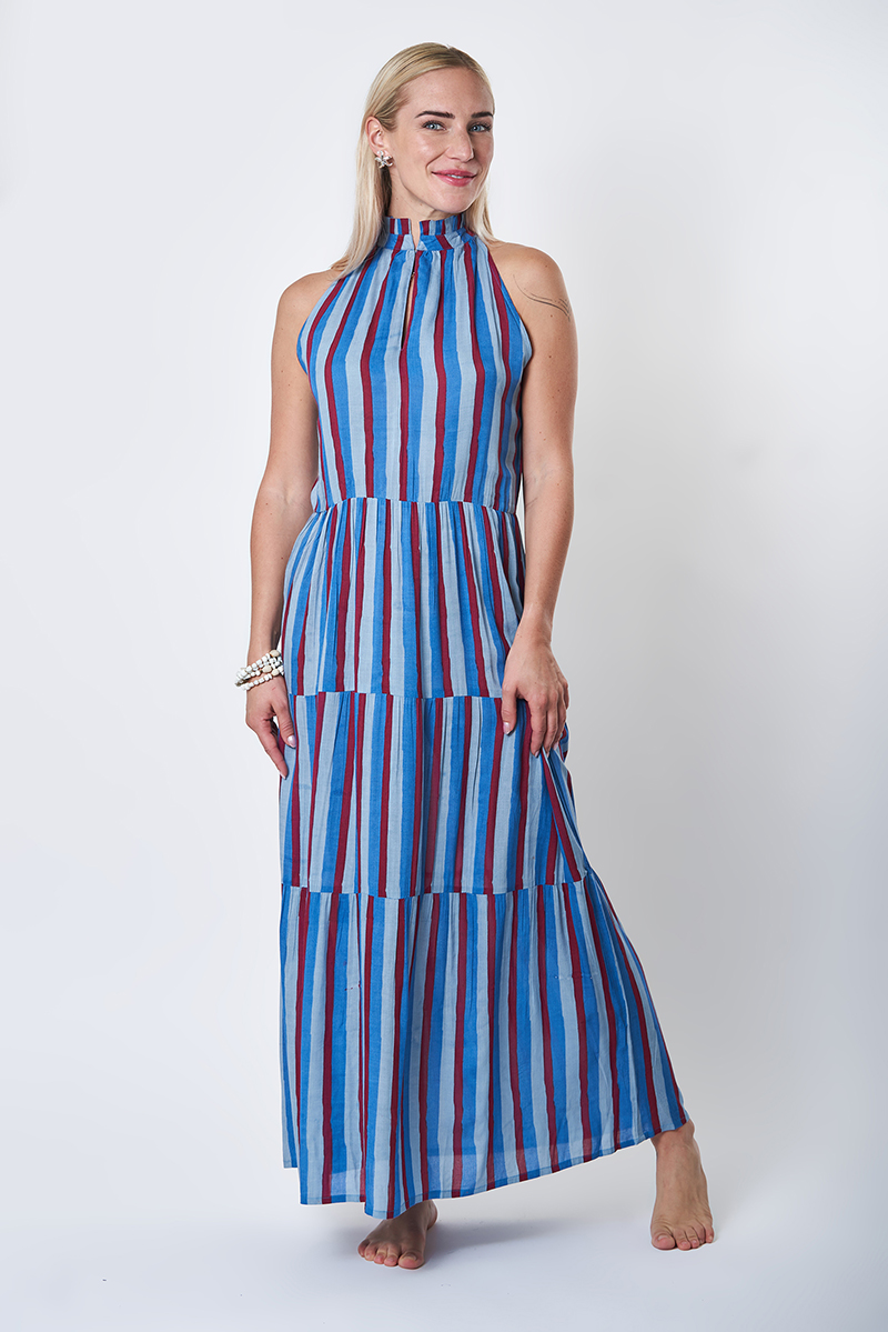 Nossa ! Robe longue à l’Emmanchure Américaine – Imprimé Rayure – 100% Coton – Réf. 26236